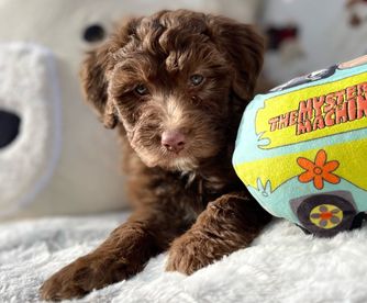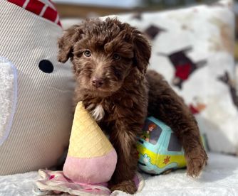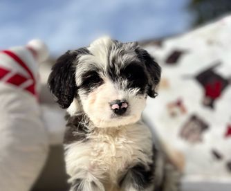 We have had our sweet Frisco for two weeks. As a first time dog owner I was not sure what to expect but we could not be happier with our little guy. From day one he was sleeping most of the night in his crate and is already going to the door to let us know when he needs to go out. He’s smart, energetic and loving. Working with Cynthia was a dream. She is incredibly knowledgeable and very responsive. It is obvious that Cynthia treats every puppy as her own and makes sure their first eight weeks with her are setting the stage for a well adjusted upbringing. I have and will continue to recommend Pawsome Aussie Doodles and Oodles to anyone and everyone!