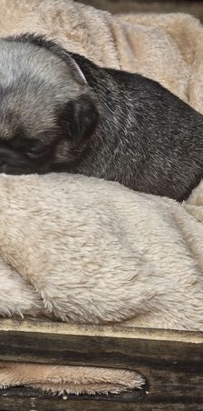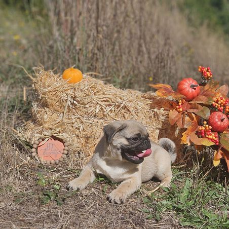 Fifi is a female Pug about 3 years old. Carefully selected as a great representative of her breed, Arianna decided to make her part of their program. Arianna has passed Good Dog’s screening process, which involved a review of their breeding practices, environment, and the mental and physical health of their dogs.