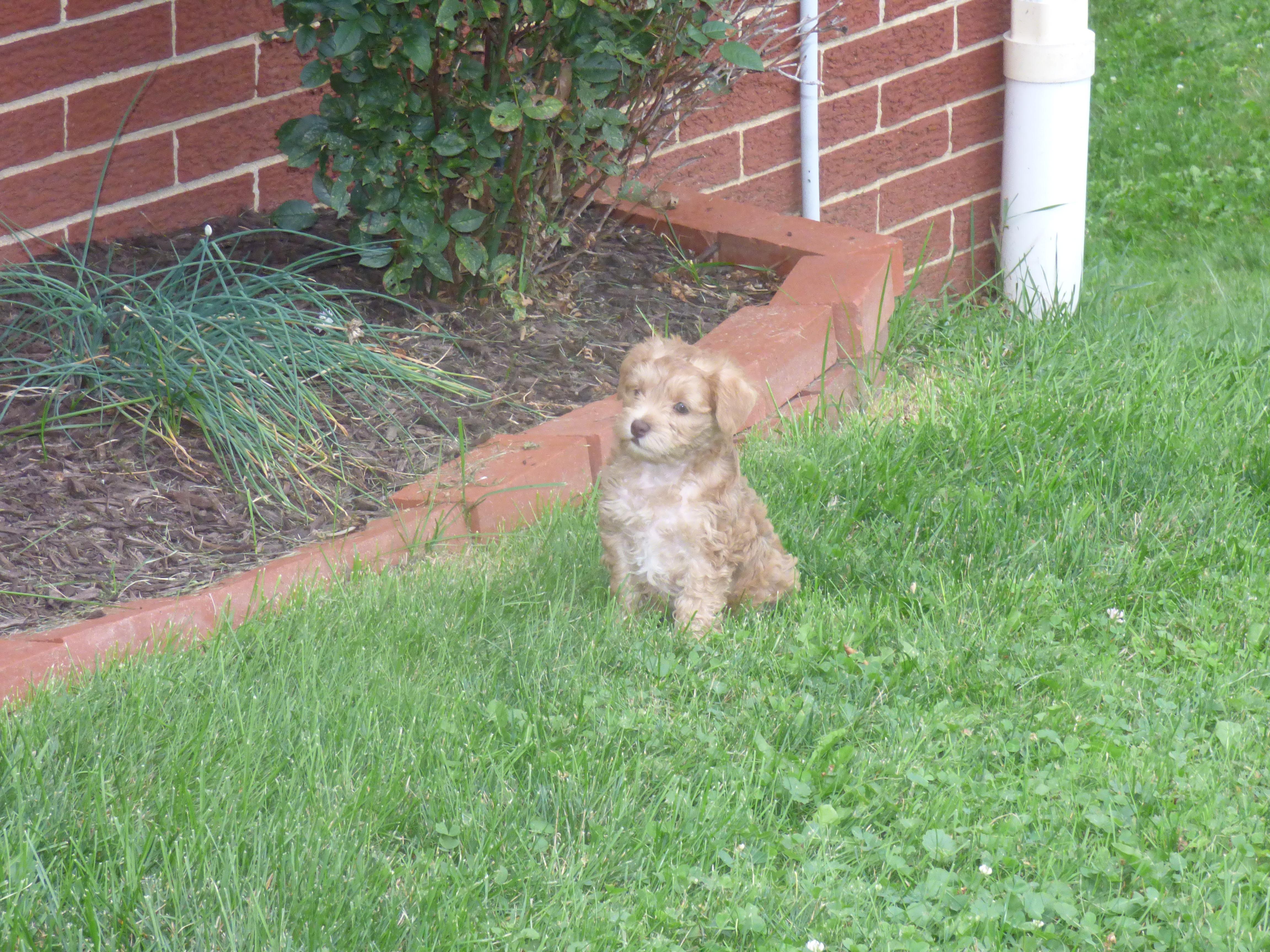 Bailey is an F1 Mini Schnoodle. Her mom is a salt and pepper mini Schnauzer, and her dad is a red mini Poodle.