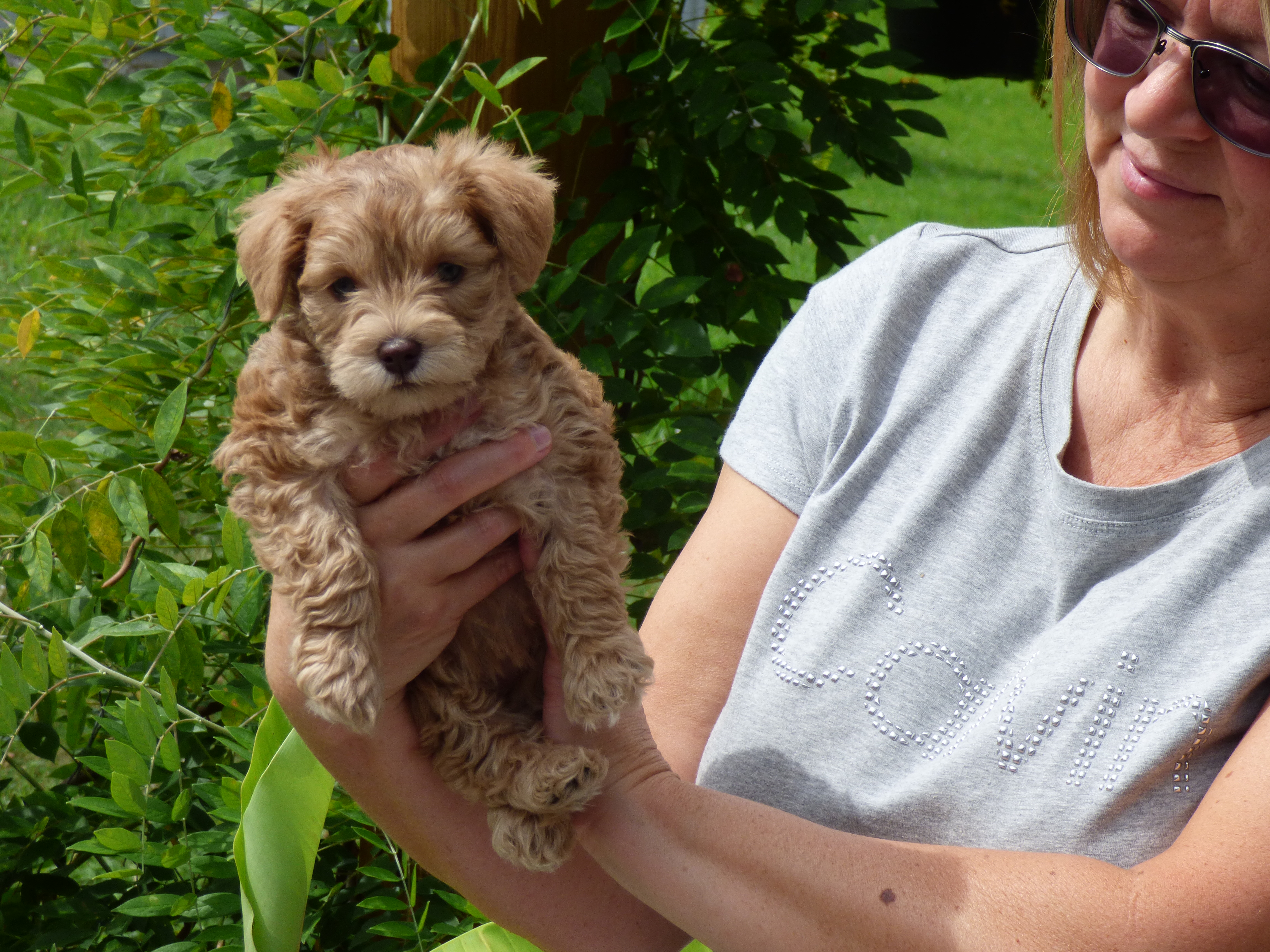 LeeLoo, the mini Schnoodle we adopted from Pawsome Puppies, has become an absolute delight and a cherished addition to our family. She is not only doing great but has seamlessly integrated into our home, forging a heartwarming bond with her new sister, Mini.