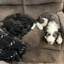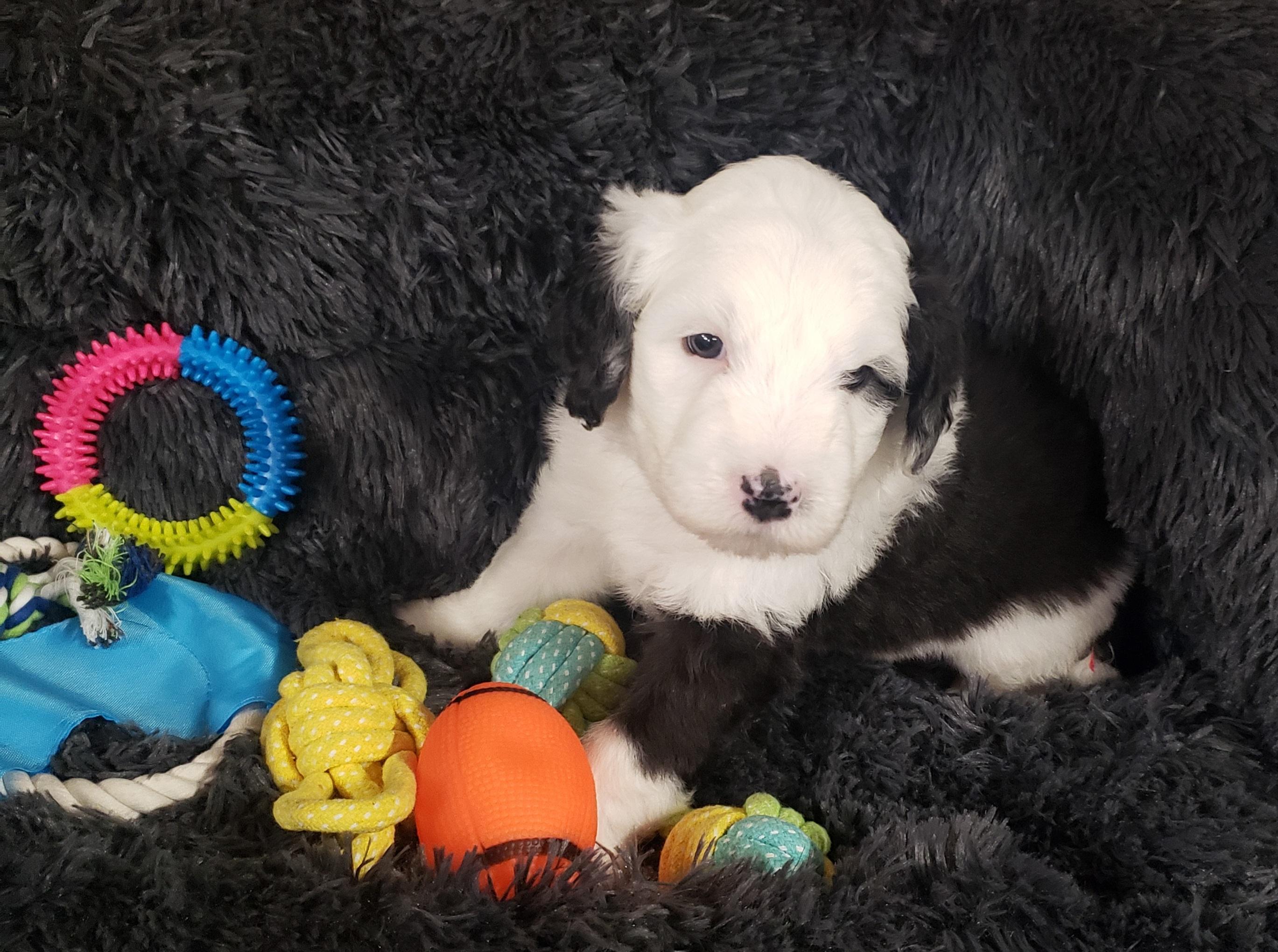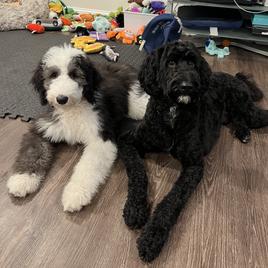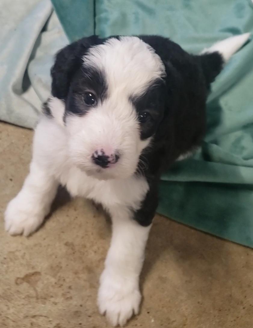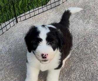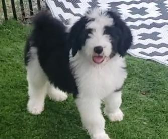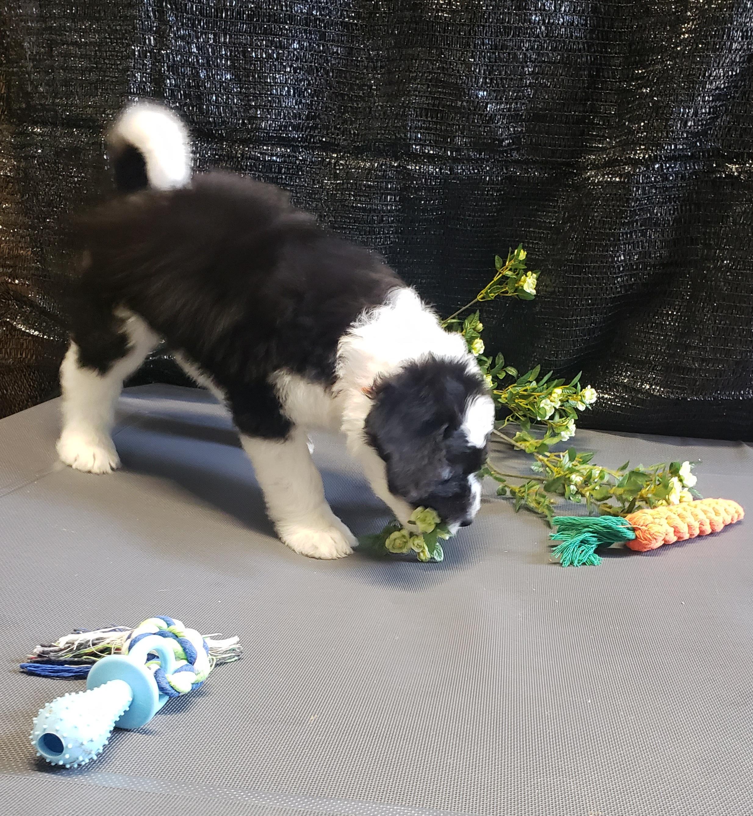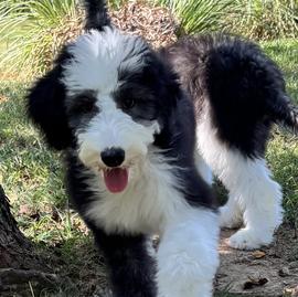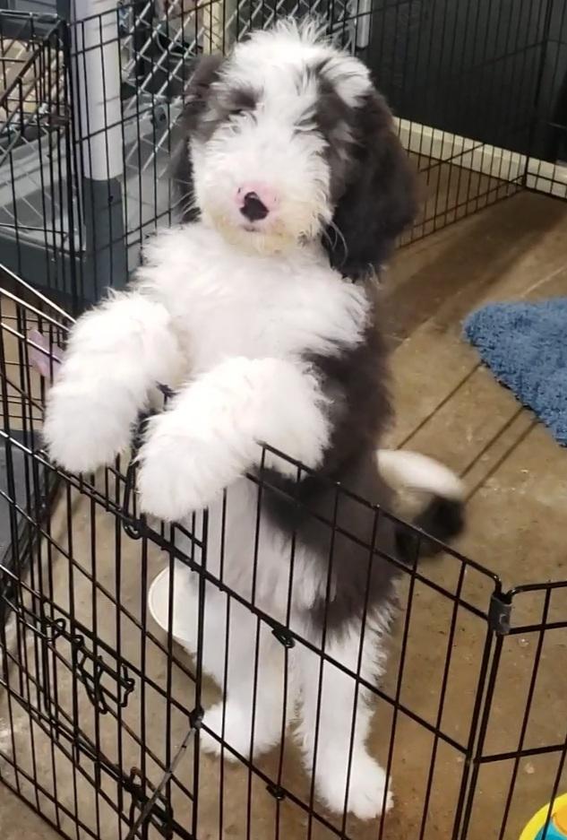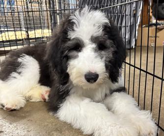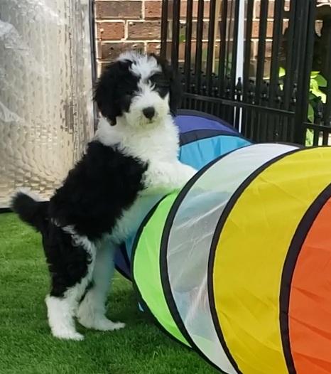 Our Sheepadoodle puppies are standard size. Poodle puppies are standard size. Sizes will vary depending on the parent dogs.