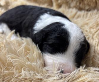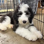 Our Sheepadoodle puppies are gray and white. Poodle puppies are parti. Colors will vary depending on the parent dogs.