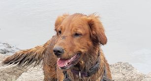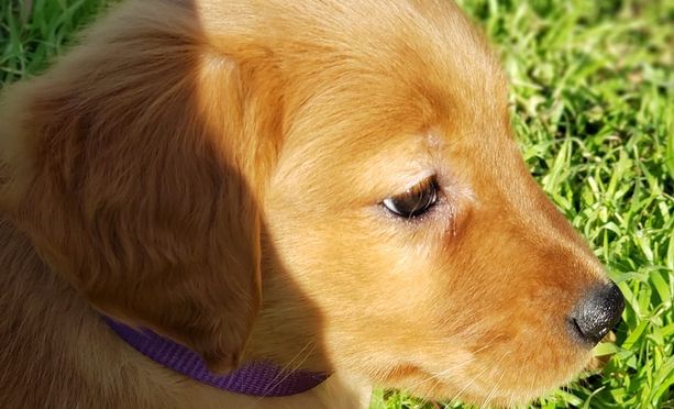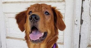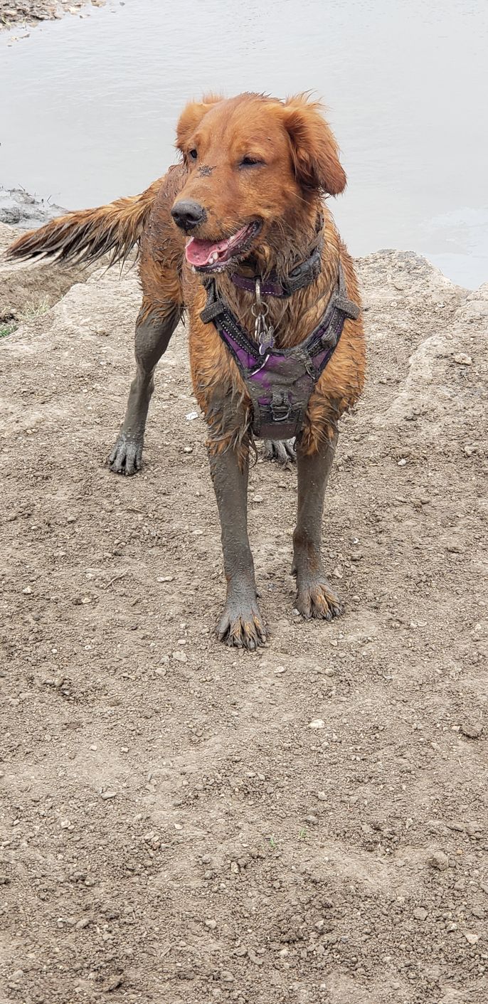 Noel is a dark golden on the smaller side. Her weight is 56.3 lbs and she stands at 22 inches at the withers.