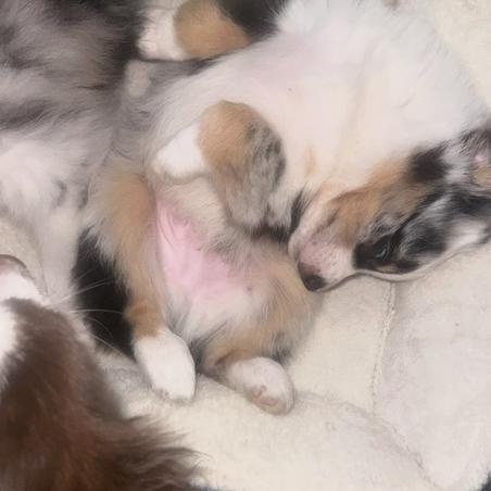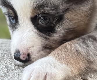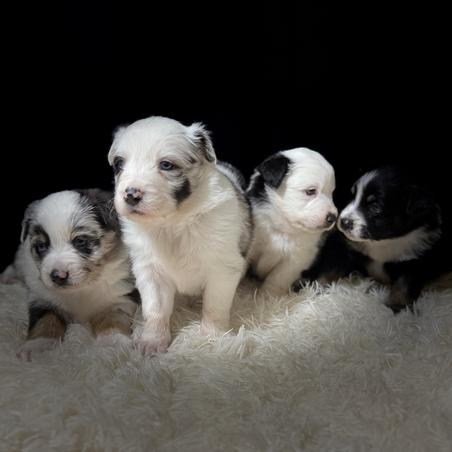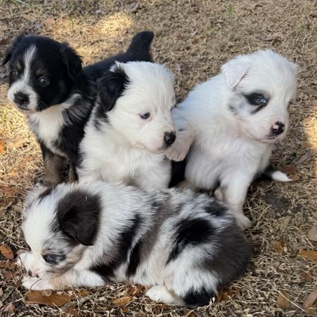 Our puppies include black & white, blue merle, black tri, red tri, and red merle. Colors will vary depending on the parent dogs.