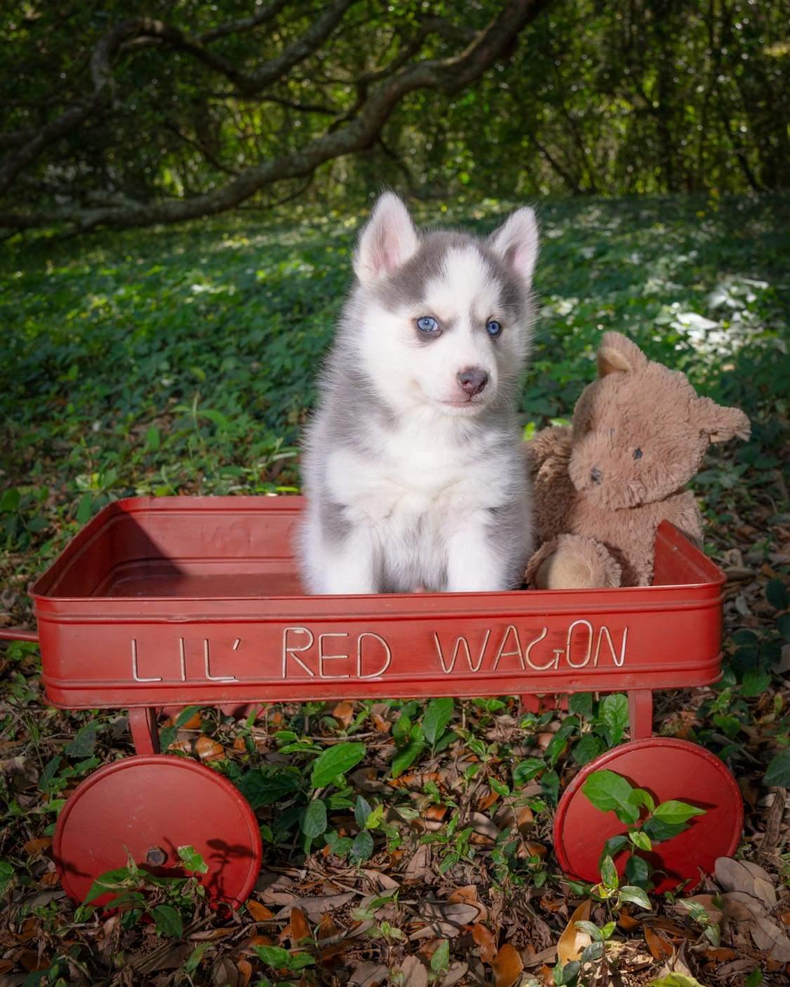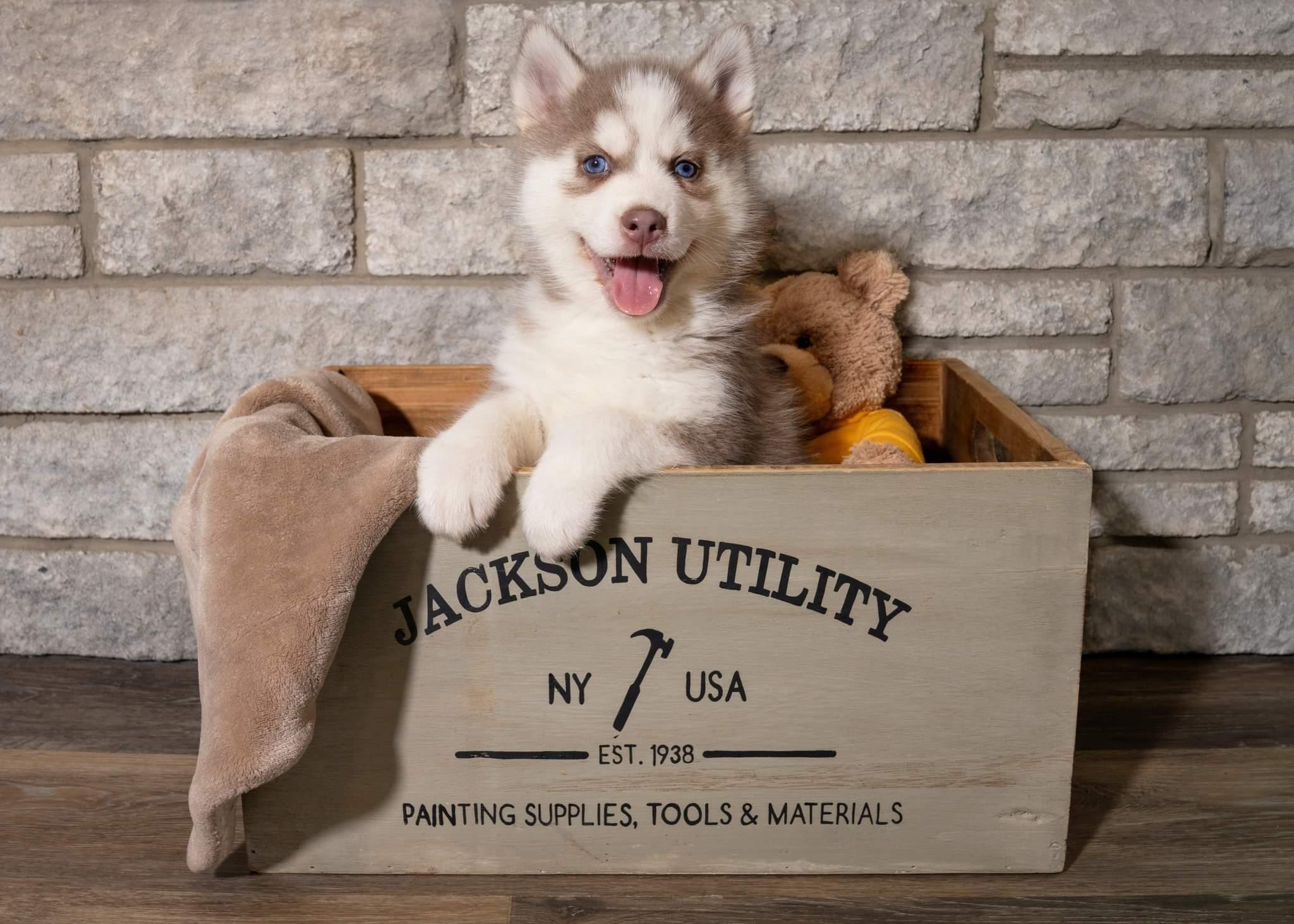 I'm Bathsheba K., the breeder behind Peace Love and Pomskies located in Lakeland, FL. Our Pomsky puppies are raised with great care. They are fully socialized in home with other dogs, cats and children. They come with everything you need. We're a small program in order to give each puppy the individual love and attention they need. All pups come with HUGE take home bags!