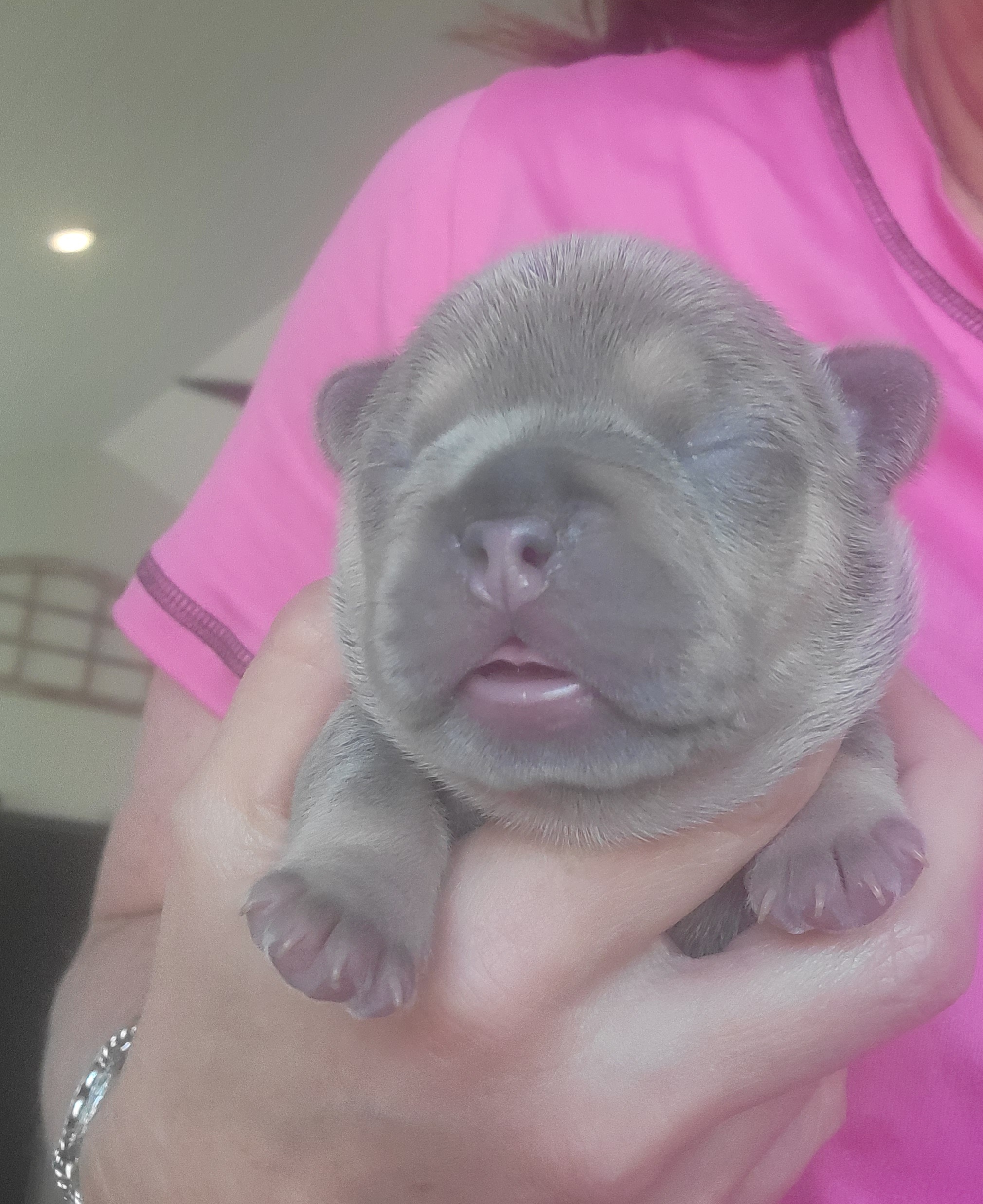 Ruby is a solid blue. She has a great cobby body and the sweetest personality. This breeding with frank will produce some beautiful frenchies. These puppies will be ready the week before Christmas!