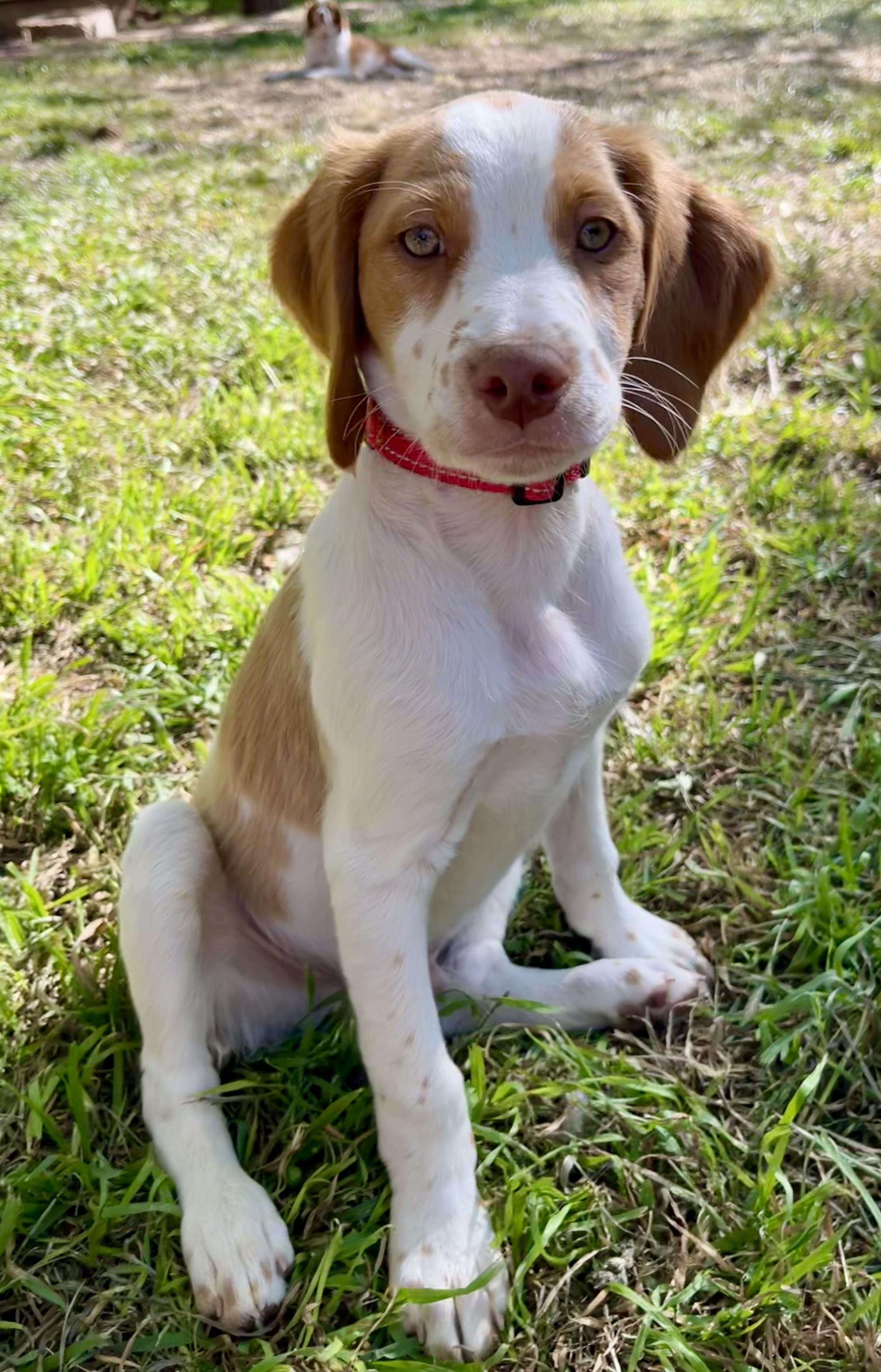 Jasper is a male Brittany. Carefully selected as a great representative of his breed, Michelle decided to make him part of their program. Michelle has passed Good Dog’s screening process, which involved a review of their breeding practices, environment, and the mental and physical health of their dogs.