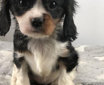 Cavalier King Charles Spaniel puppies include blenheim, ruby, tri-color, black and white, and black and tan. Colors will vary depending on the parent dogs.
