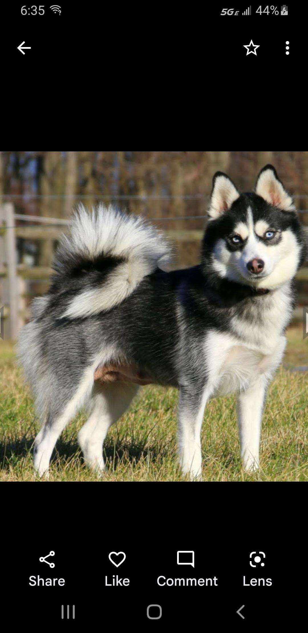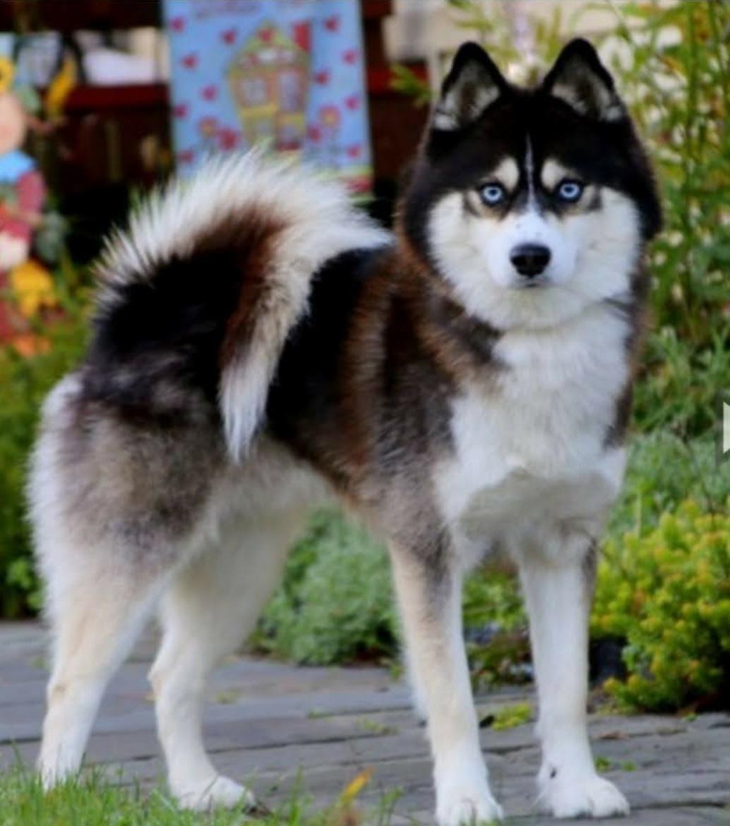 Marevick is 75% Huskey and 25 Pomeranian, He has all the Huskey features in an 19 pound package.