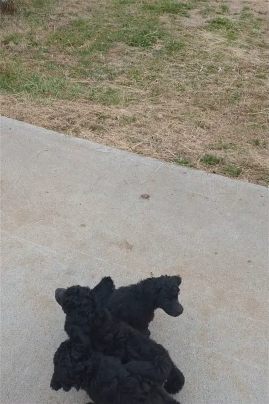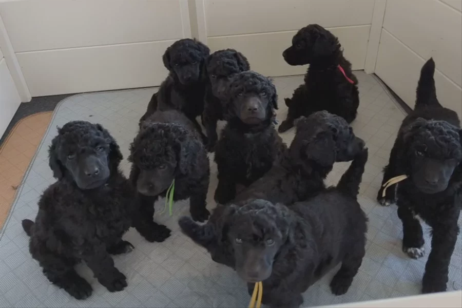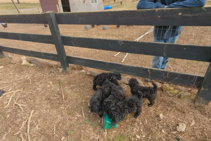 We are a well bred, health checked poodle kennel. AKC Champion sire and half AKC finished dam (bred by us) both owner handled and part of our family. The sire has the 2011 Enkanuba (National's) Best in Show champion and 2011 PCA (Poodle Club of America) Best in Specialty champion as a great great grandfather. Our sire was used at the 2025 PCA (Poodle Club of America) National Specialty to secure the reserve junior win by one of the owners (my son). Both have performance titles and are AKC Temperament titled. If you are interested in our pups a phone call or a meet up is required. We are not an Amazon store, so if you apply be ready to call or meet up. It is important to us to match the right temperament pup with the buyer. We feel this can only be done with an actually live conversation not texting. Our pups are not catalog items. This litter has a blue coat color. They are table, bathed, clipper, crate, farm animal, kids, other poodles and dogs, neighbor, potty, etc. introduced. Here are the pups today coming to greet me. They were a bit tired.