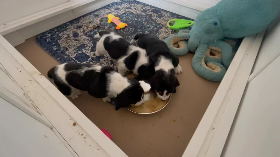 Puppies are 4 weeks old today and eating like little champs!