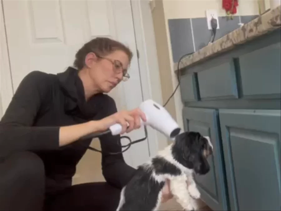 Puppies have graduated from sponge baths to big puppy tub! At first they were unsure but as the scrubbing started they found they really enjoyed it! After the bath I introduce the hair dryer on all of them. Surprisingly, the noise and warm air didn’t even phase them! All three are such good, calm, loving little babies!