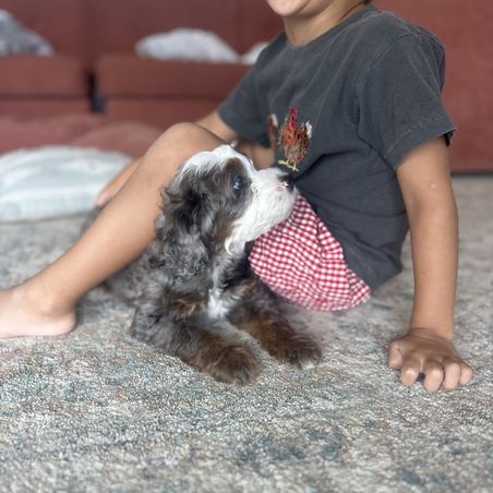 I'm Alicia V., the breeder behind Peach & Pawmetto Doodles located in Alabama. Our breeding program focuses on the health and well-being of our dogs. We ensure that all breeding practices meet the highest standards of care and responsibility, with our dogs all living in guardian home families.