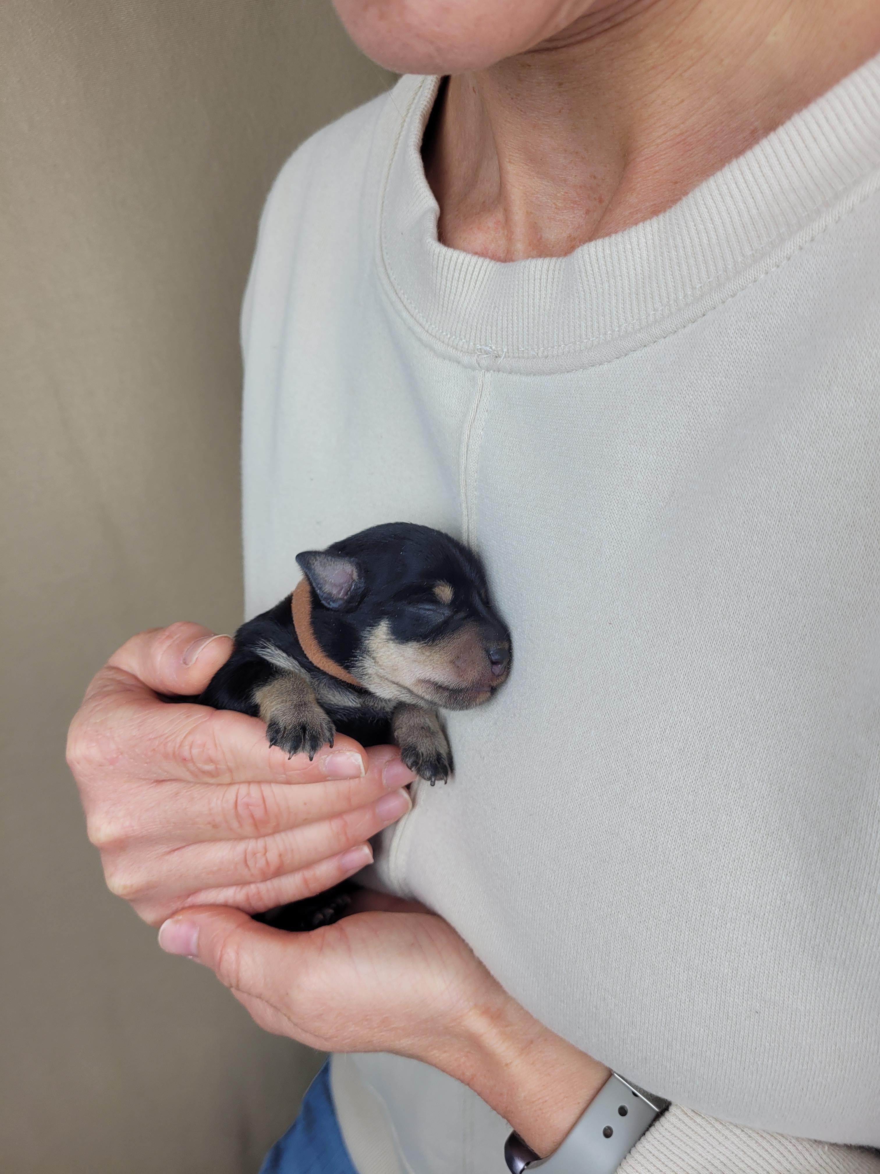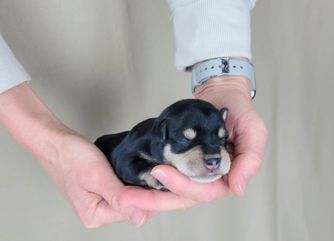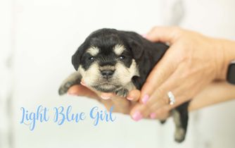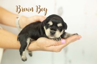 Our puppies are black and silver. Colors will vary depending on the parent dogs.