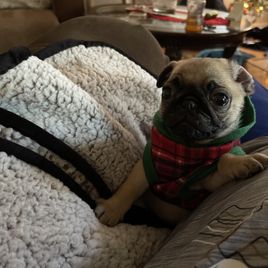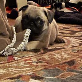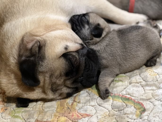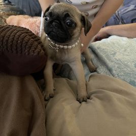 To say she was amazing doesn't do her justice. She kept us informed on Mavis's progress and sent pictures along her growth. Her communication with us was exemplary. She truly loves all her puppies and the temperament of Mavis shows that. If you are lucky enough to get ones of her amazing pug puppies you will not regret it.