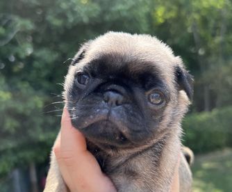 Kaley Farmer from peachy pugs was a delight. Every step from the application to pick up was so simple and professional. She was able to answer all of my questions and get me all of the puppies paper work needed for registration. My new puppy will be so love and I’m happy she came from Peachy Pugs.