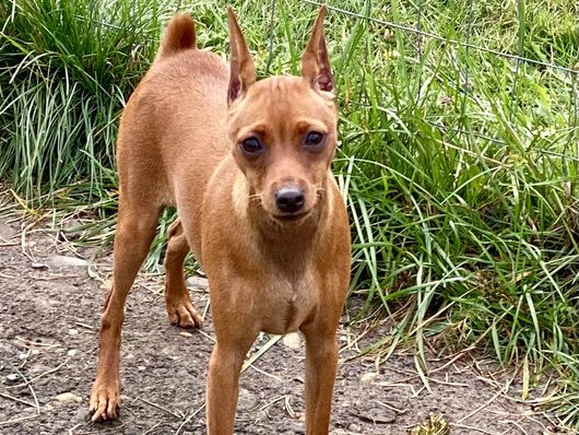 Wish is a female Miniature Pinscher. Carefully selected as a great representative of her breed, Jacqueline decided to make her part of their program. Jacqueline has passed Good Dog’s screening process, which involved a review of their breeding practices, environment, and the mental and physical health of their dogs.