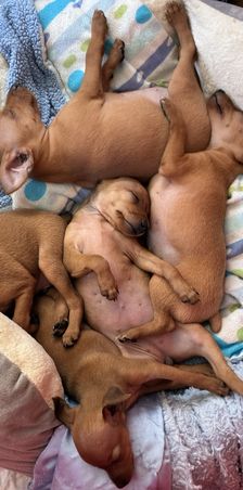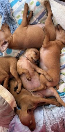 Our puppies include stag red, red, and black and rust. Colors will vary depending on the parent dogs.