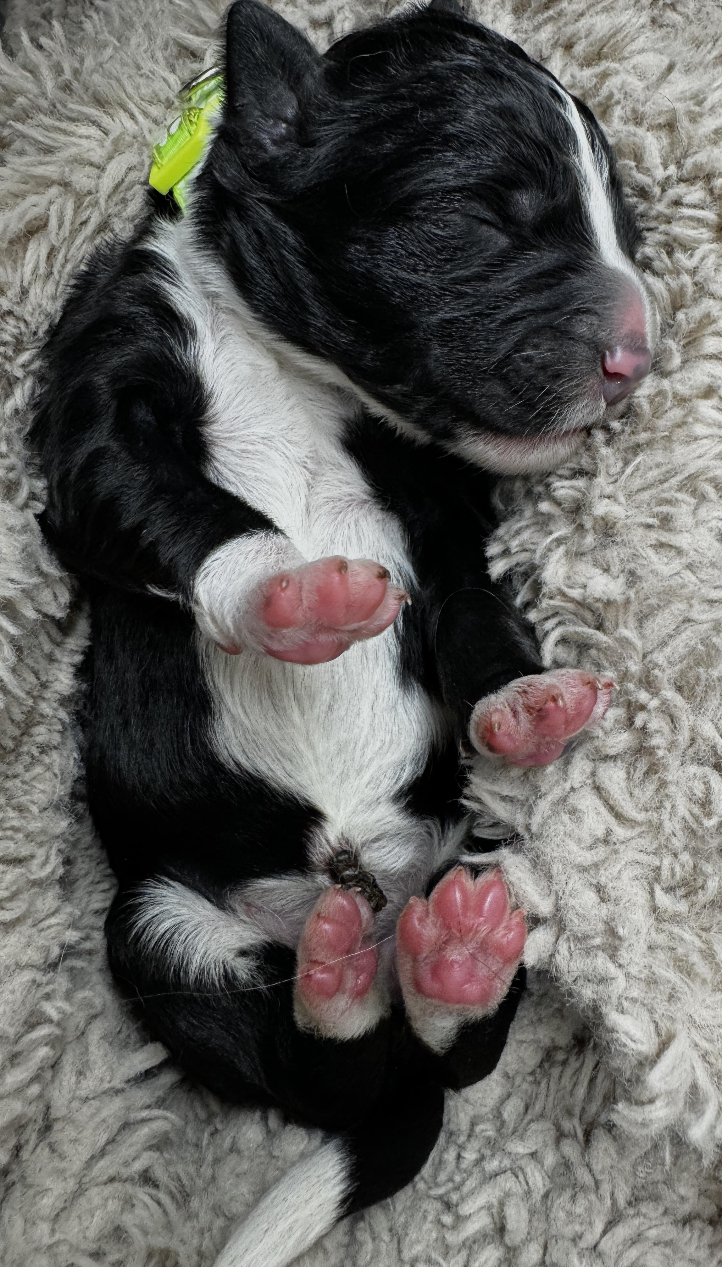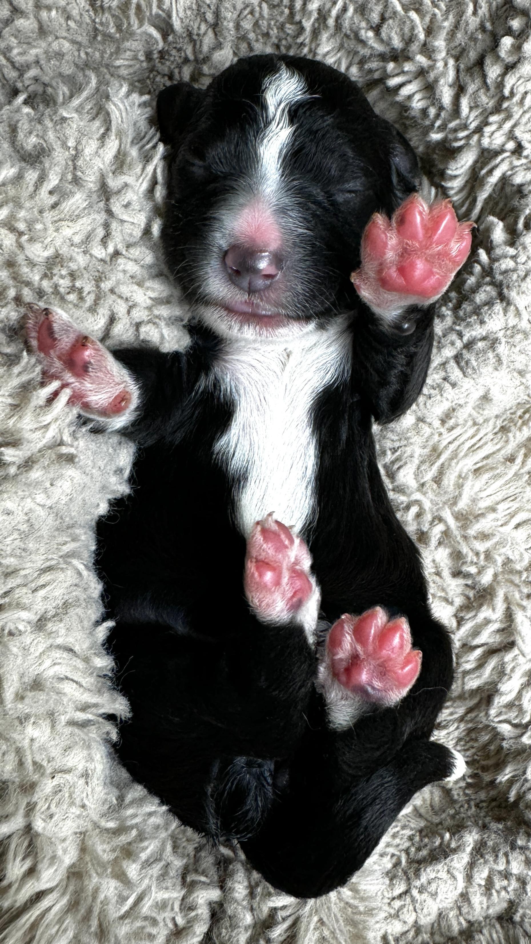 Our Goldendoodle puppies are standard size. Sheepadoodle puppies are standard size. Sizes will vary depending on the parent dogs.