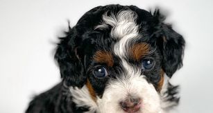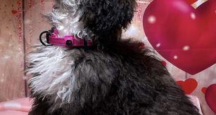 Luna is a 17 pound tiny Bernedoodle. She is a black/gray and white tuxedo, with a very soft, curly coat. She has a loving and affectionate personality, and is an intelligent, active and playful girl.