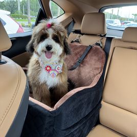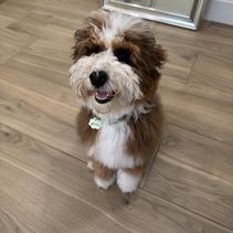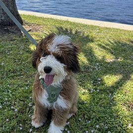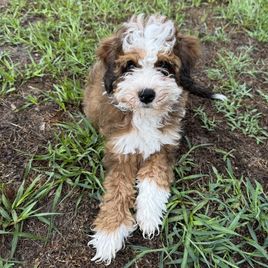 Bentley is a handsome tricolor F1B Bernedoodle, He is very energetic and loves to play with our other dogs and run when he gets the chance. He is also a very affectionate guy who enjoys cuddling with us.