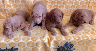 Our Bernedoodle puppies include tiny and mini sizes. Goldendoodle puppies are medium size. Sizes will vary depending on the parent dogs.