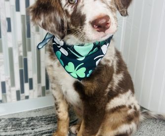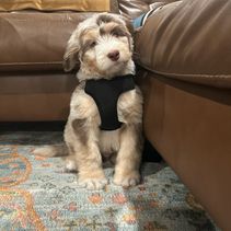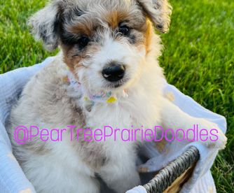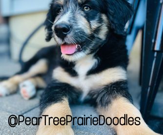 We got our dog, Marshall - an Aussie Bernedoodle, from Pear Tree Prairie Doodles when he was 12 weeks old. At that point he was almost 100% potty trained, we just needed to get him used to a new system at a new home! Marshall has such a great temperament, is extremely smart and quick to learn new things, and is absolutely great with our three boys (ages 10, 10, and 5). You can tell Brandy puts in a lot of time working with the puppies, and the puppies are raised alongside her own dogs and children to make sure they are ready to join their furever families! I 10/10 recommend Pear Tree Prairie Doodles to families looking for their next best friend!