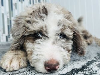 Our Bernedoodle puppies include tri-color and phantom. Poodle puppies include red, gray, and phantom. Aussiedoodle puppies include brown and white, blue merle, red merle, black and white, black tri-color, and red phantom. Assorted Doodle Crosses puppies include red phantom, phantom, chocolate, merle, blue merle, black tri-color, black phantom, and black and white. Colors will vary depending on the parent dogs.