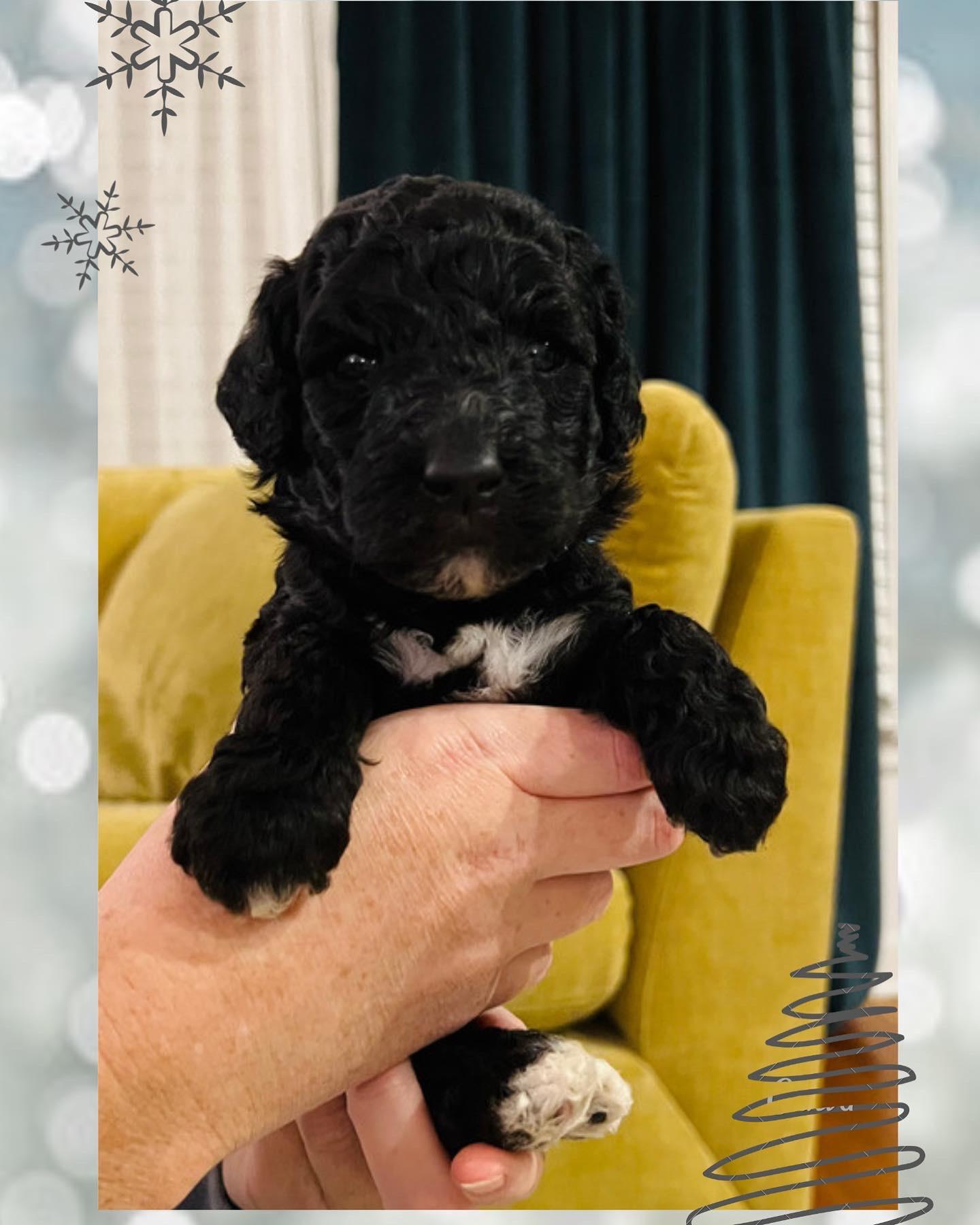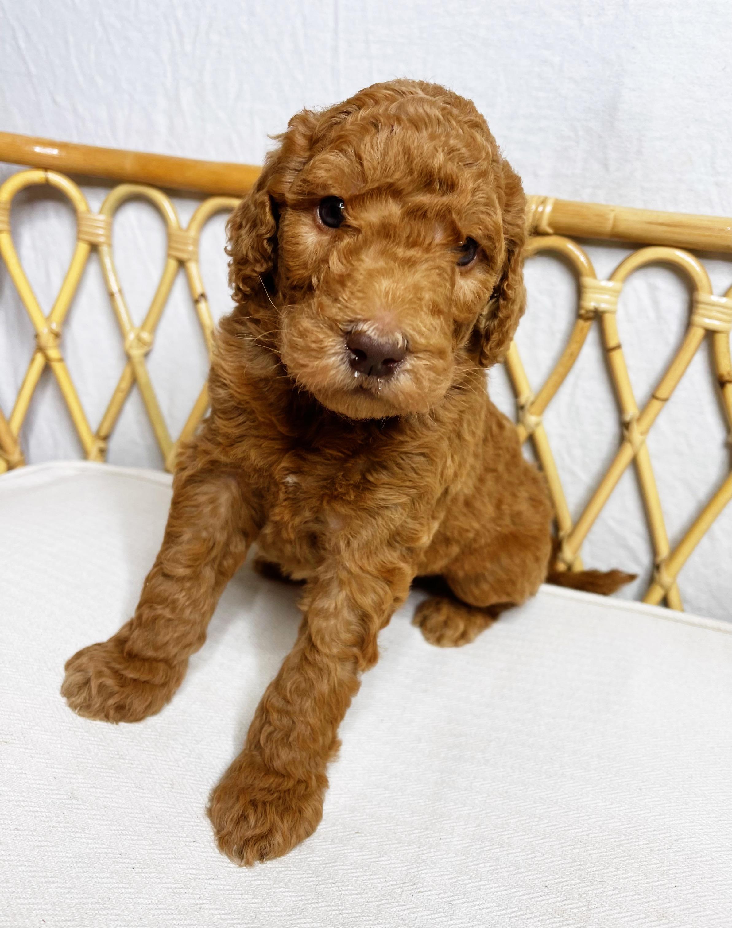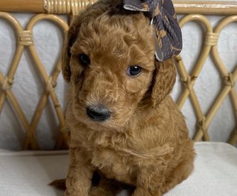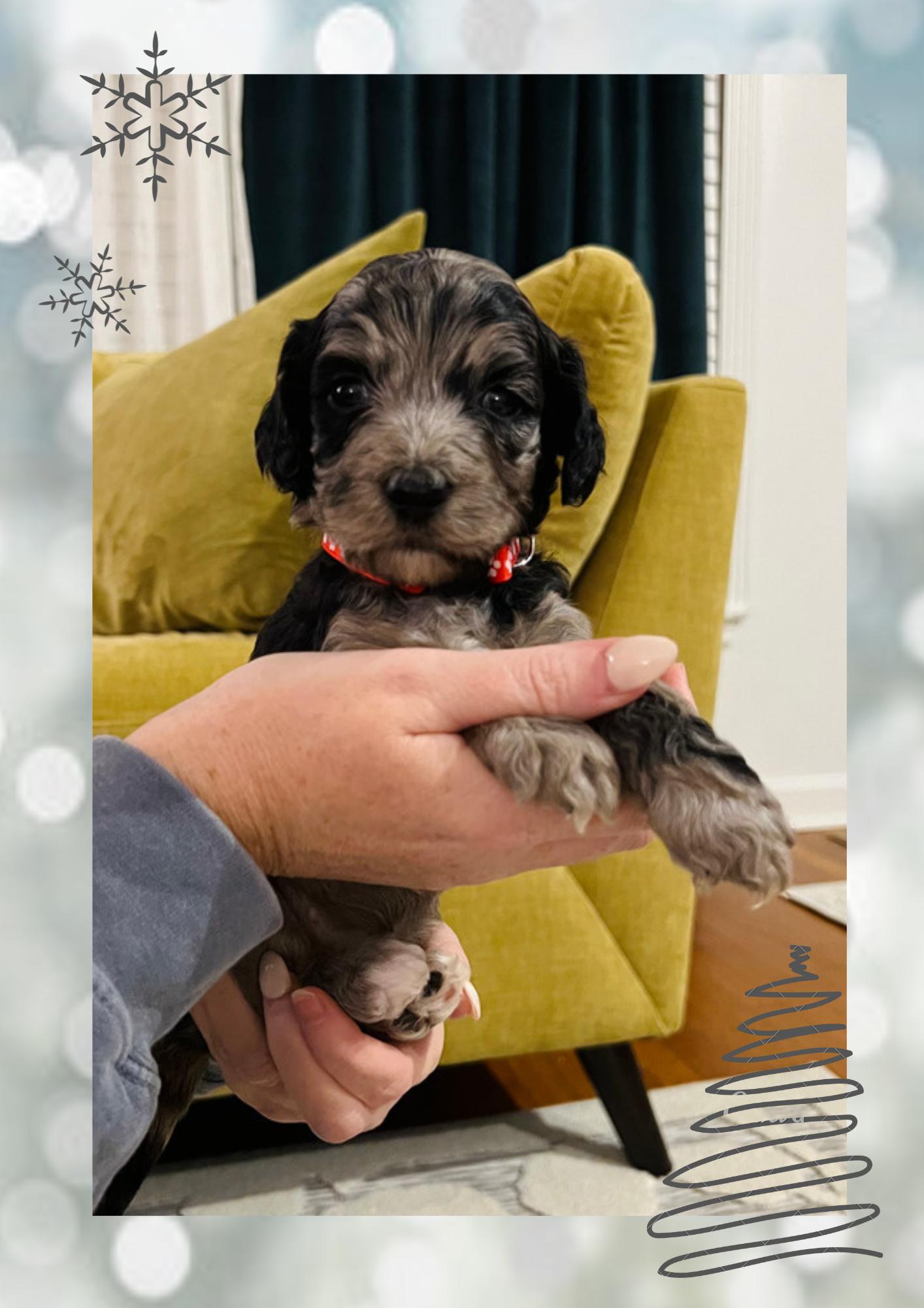 “Hello! We are Pearl Grey Doodles from Moulton, AL. Our sweet girl, Rubie Pearl, had her second litter of F1bb Goldendoodle puppies on November 23, 2022. She is a Red Abstract Standard Poodle and weighs appx 65lbs. Her sire is our very own Grey Thomas. He is a Merle Tuxedo Mini F1b Goldendoodle and weighs appx 40lbs. Both parents have been genetically tested and cleared. Our puppies will be low to non shedding, hypoallergenic, and have wavy to curly coats. They will come with age appropriate vaccinations, dewormed, dewclaws removed, microchip package, CKC Registration, and a Special Puppy Gift Bag from Pearl Grey Doodles! Our puppies are raised in our home, with socialization from birth, begin liter pan training, and basic grooming started. Breeding rights are included. Puppy picks will go in order of deposits received. We currently have picks available for 3 males. A $400 non-refundable Selection Deposit will be due when you pick your puppy. This is your commitment to your new fur-ever puppy. We will send updated pics and videos over the next couple of weeks as your pup grows! ♥️.”