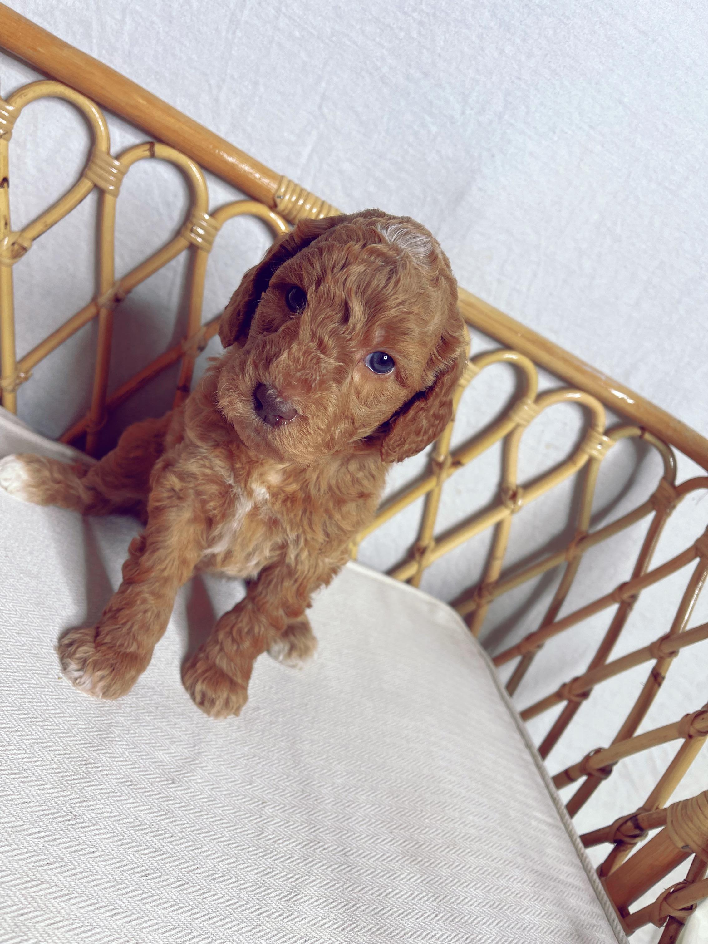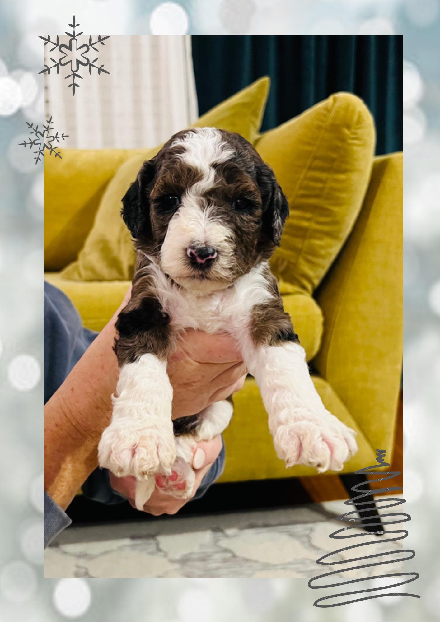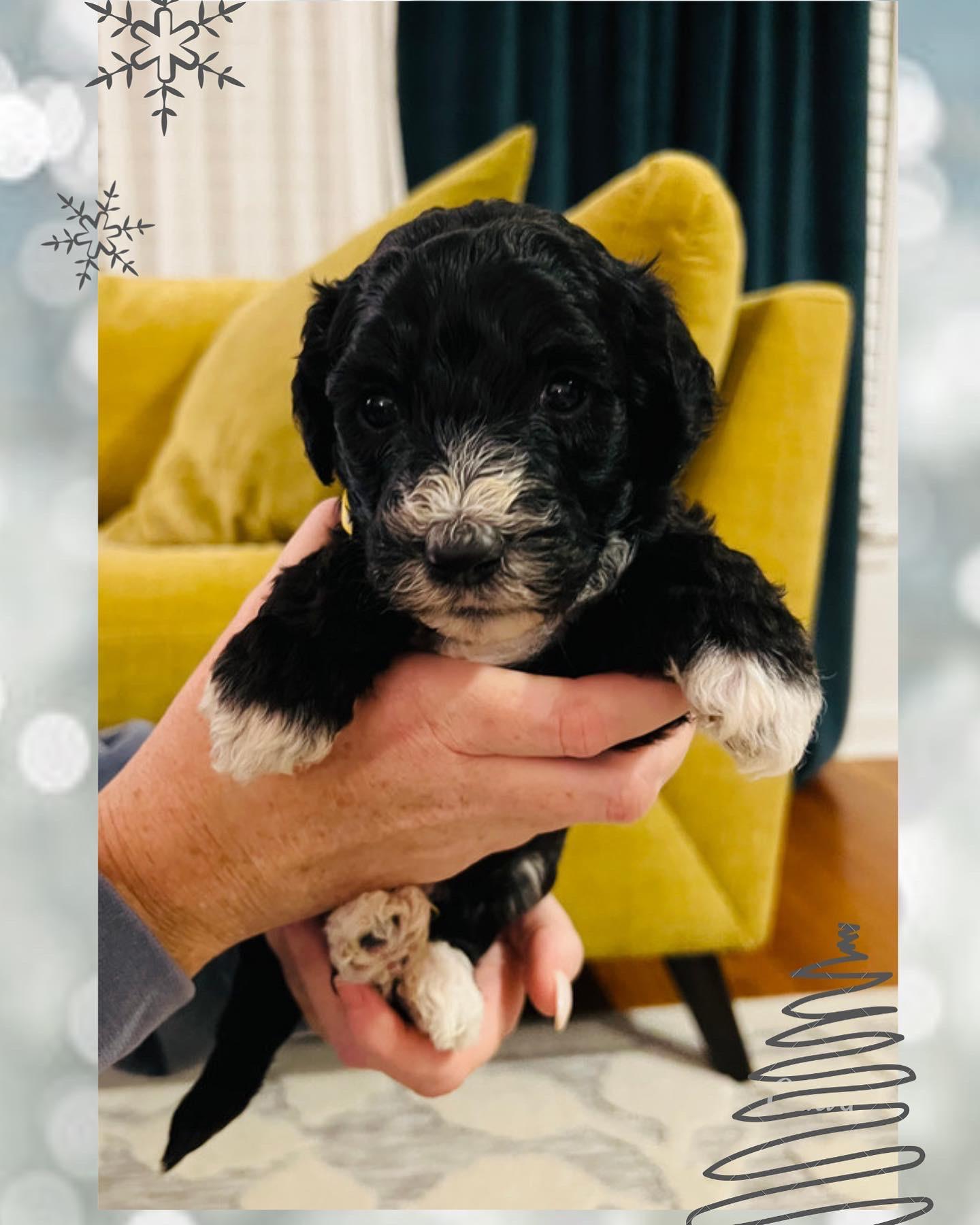 “Hello! We are Pearl Grey Doodles from Moulton, AL. Our sweet girl, Rubie Pearl, had her second litter of F1bb Goldendoodle puppies on November 23, 2022. She is a Red Abstract Standard Poodle and weighs appx 65lbs. Her sire is our very own Grey Thomas. He is a Merle Tuxedo Mini F1b Goldendoodle and weighs appx 40lbs. Both parents have been genetically tested and cleared. Our puppies will be low to non shedding, hypoallergenic, and have wavy to curly coats. They will come with age appropriate vaccinations, dewormed, dewclaws removed, microchip package, CKC Registration, and a Special Puppy Gift Bag from Pearl Grey Doodles! Our puppies are raised in our home, with socialization from birth, begin liter pan training, and basic grooming started. Breeding rights are included. Puppy picks will go in order of deposits received. We currently have picks available for 3 males. A $400 non-refundable Selection Deposit will be due when you pick your puppy. This is your commitment to your new fur-ever puppy. We will send updated pics and videos over the next couple of weeks as your pup grows! ♥️.”