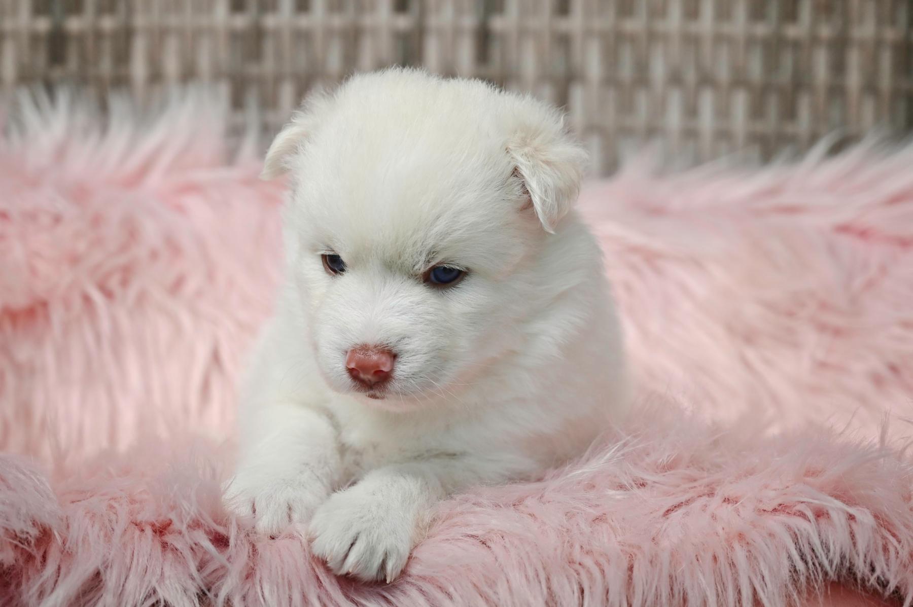 “The price is usually $2500 for non-blue eyes and $5000 for two blue eyes. We have a $500 deposit, but unlike other breeders, mine is refundable until pups turn two weeks old.”