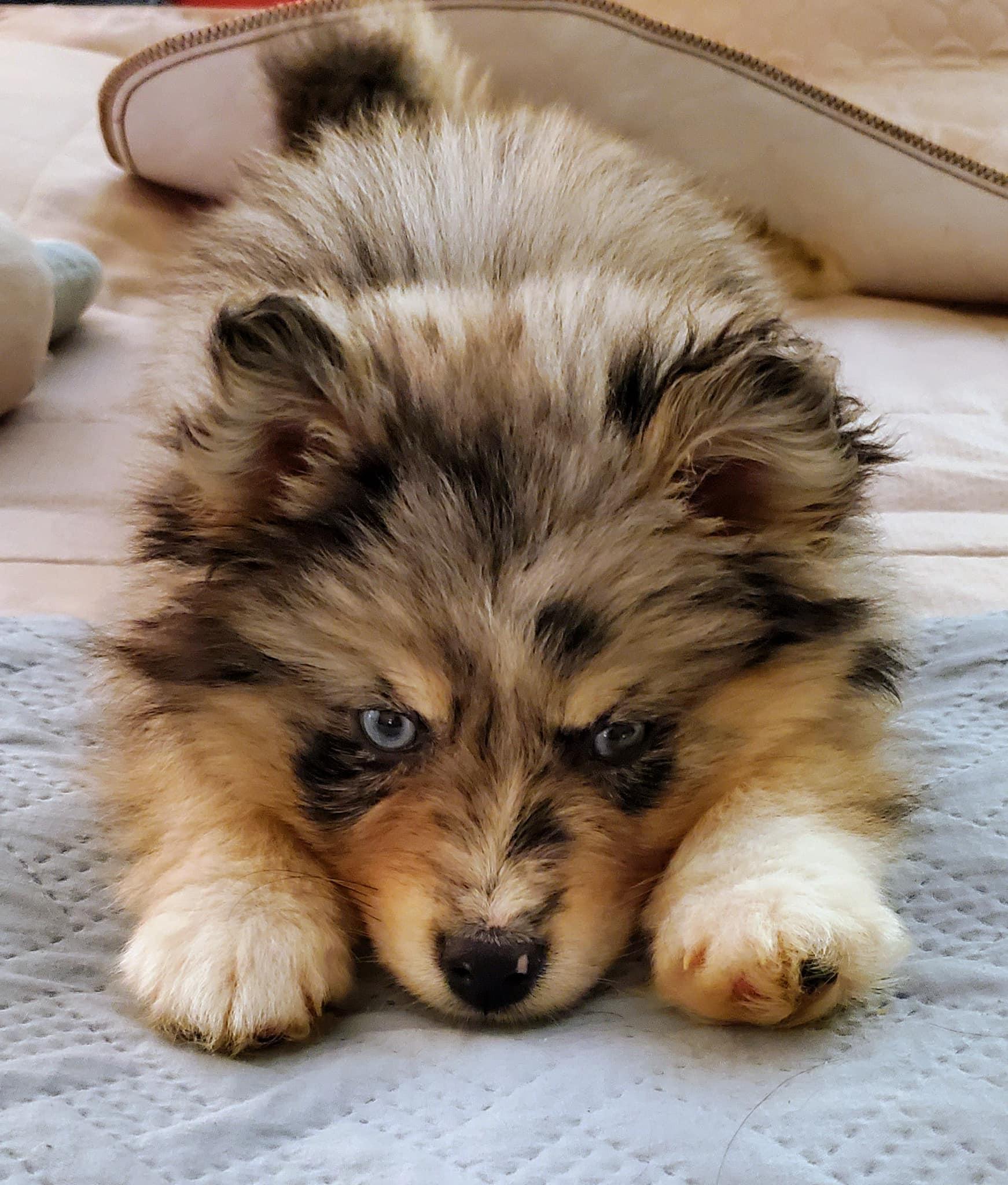 Aspen is merle pomsky we got her from Keeper of Stars in Ohio. She is very playful and sweet.