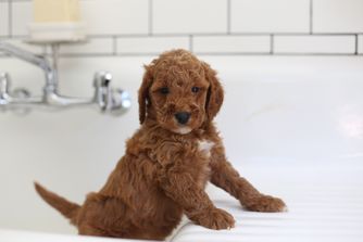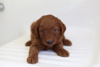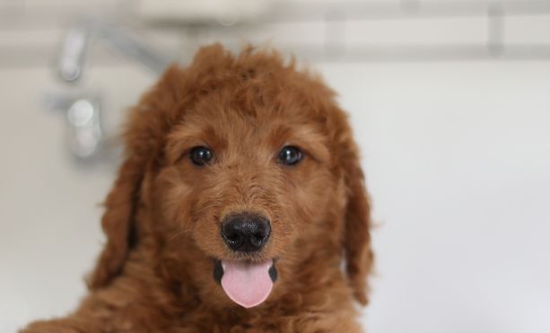 Our Goldendoodle puppies are apricot. Colors will vary depending on the parent dogs.