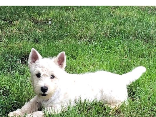 Chrissy is a beautiful Westie that loves people and is very sociable. She is gentle natured and loves to play and loves attention. Her calm, patient demeanor makes her a wonderful companion for kids and adults! She is AKC registered and OFA health tested for hips, patellas, elbows, leg-calf’s cardiac, and eyes!