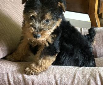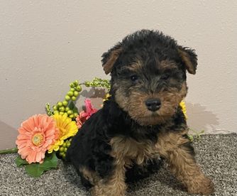 Welsh Terrier puppies are black and tan. Colors will vary depending on the parent dogs.