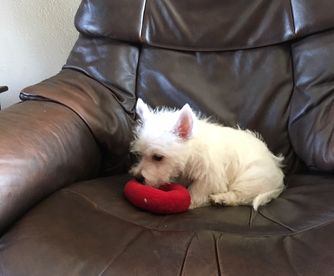 Pixel is a male West Highland White Terrier. Carefully selected as a great representative of his breed, Peggy decided to make him part of their program. Peggy has passed Good Dog’s screening process, which involved a review of their breeding practices, environment, and the mental and physical health of their dogs.