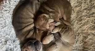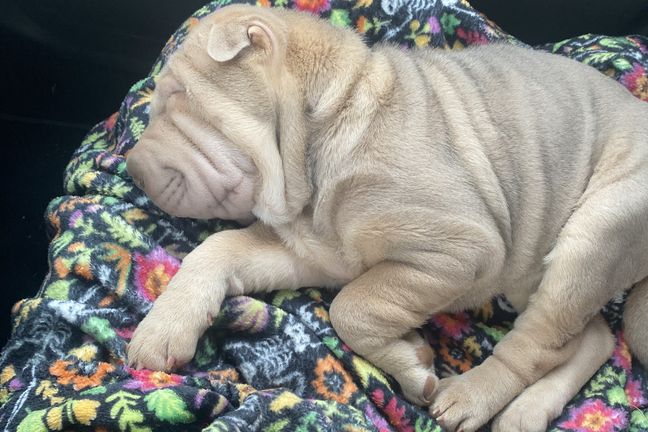 Shaggy is a male Chinese Shar-Pei. Carefully selected as a great representative of his breed, Jessy decided to make him part of their program. Jessy has passed Good Dog’s screening process, which involved a review of their breeding practices, environment, and the mental and physical health of their dogs.