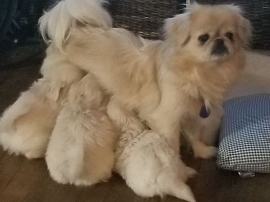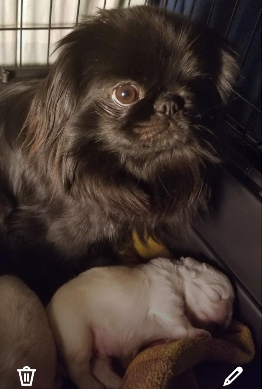Mia is an Embark DNA health tested cream peke with a steady temperament. She is very confident and affectionate. Her puppies are always sweet, beautiful and wonderful family companions.