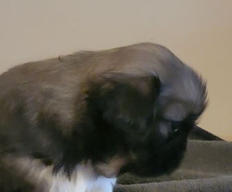 Chocoli thinks she owns me. Is a good helper in the kitchen. Loving nature.