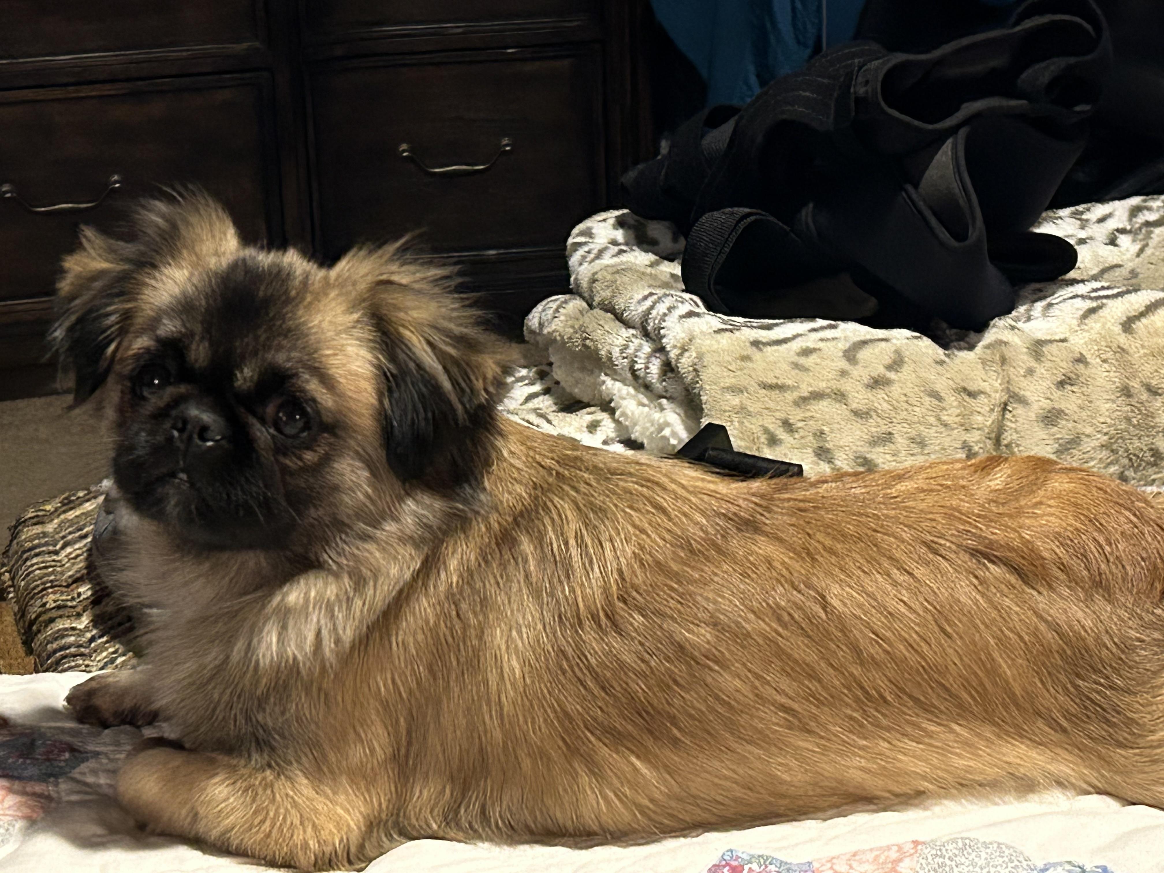 Harley is a Sleeve peke at 5lbs she is very sweet with a calm personality.