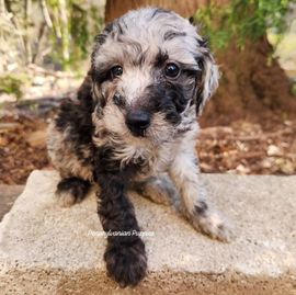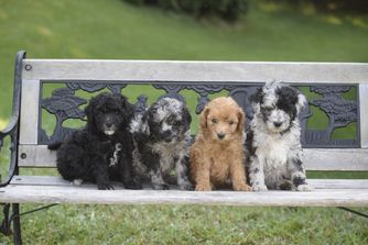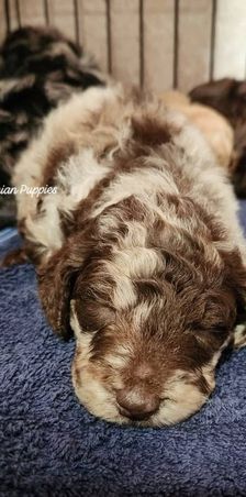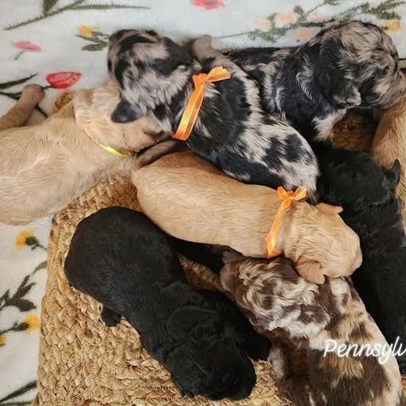 Labradoodle puppies include merle, apricot, and black. Colors will vary depending on the parent dogs.