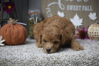 Labradoodle puppies are miniature size. Sizes will vary depending on the parent dogs.