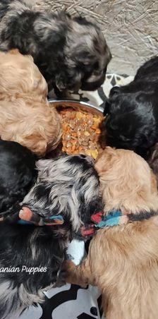 This week both litters have started eating puppy chow AND are getting very used to bath time plus the hair dryer 😂❤️🫧