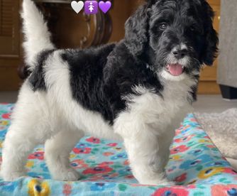Each litter is born and raised in my home. My goal is to “raise each puppy as I would want a puppy raised for me.” I specialize in Bernedoodles and Sheepadoodles, as they're an excellent option for families…especially those that have dog-allergies. My best achievement as a breeder has been witnessing a child hold a puppy for the first time and not have an allergic reaction. Pups are my passion!