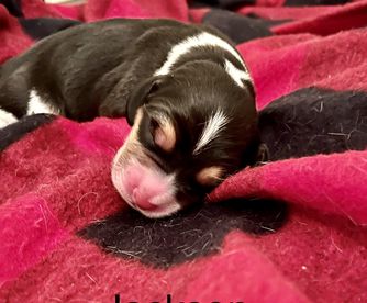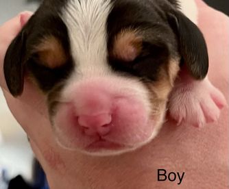 Our puppies are black red and white. Colors will vary depending on the parent dogs.