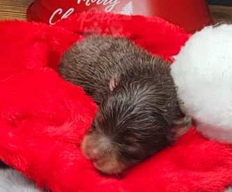 Penny carries chocolate, and white. She's such a little lady and has the sweetest eyes. She's a wonderful momma and makes us laugh with all her antics.