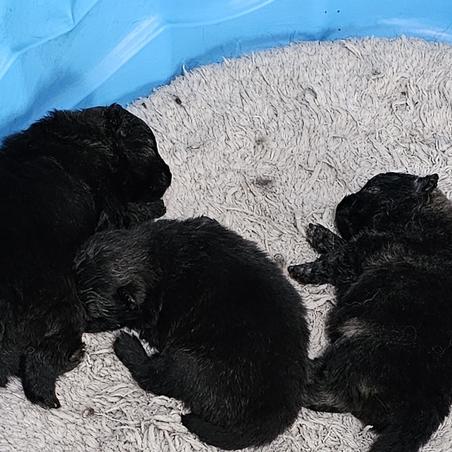Sleepy babies... 3 weeks old now! Macey has found her people, but Rider and Rebel are still looking!