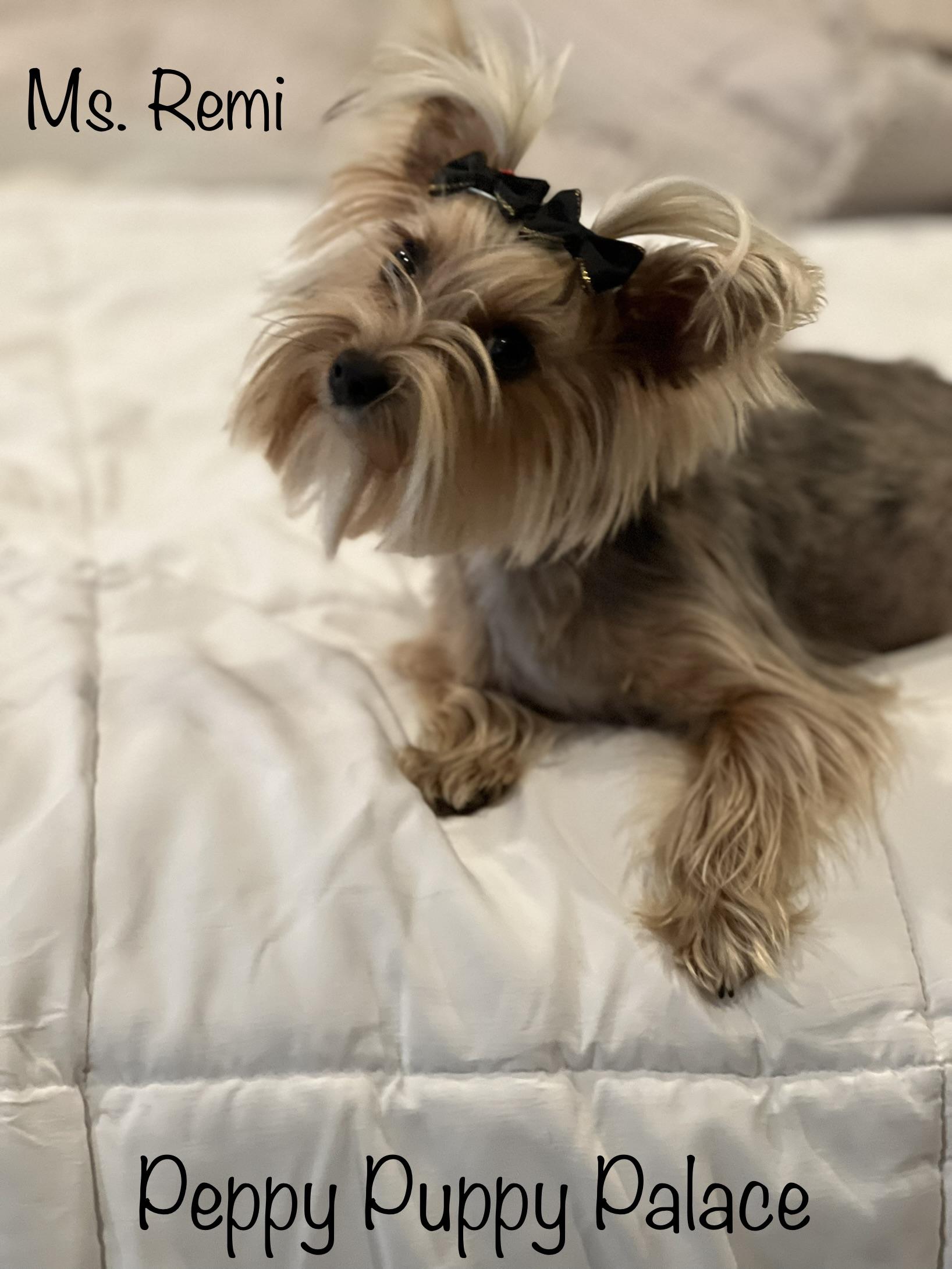 Remi is a female Yorkshire Terrier. Carefully selected as a great representative of her breed, Melanie decided to make her part of their program. Melanie has passed Good Dog’s screening process, which involved a review of their breeding practices, environment, and the mental and physical health of their dogs.