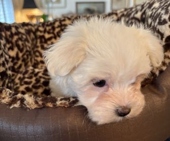 Mary Louise is a female Maltese. Carefully selected as a great representative of her breed, David decided to make her part of their program. David has passed Good Dog’s screening process, which involved a review of their breeding practices, environment, and the mental and physical health of their dogs.