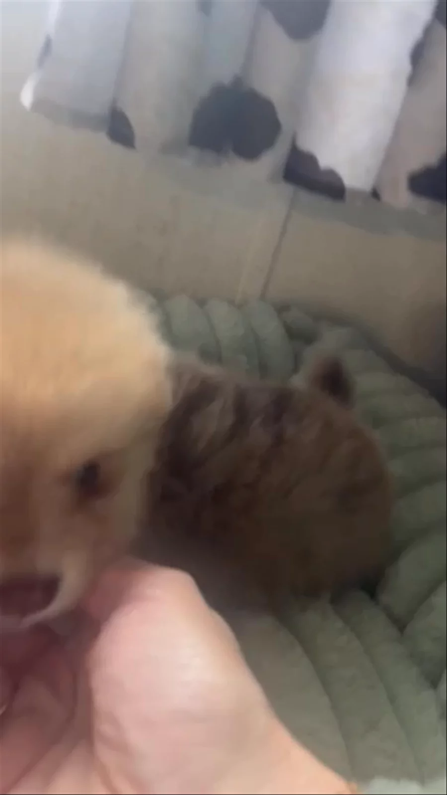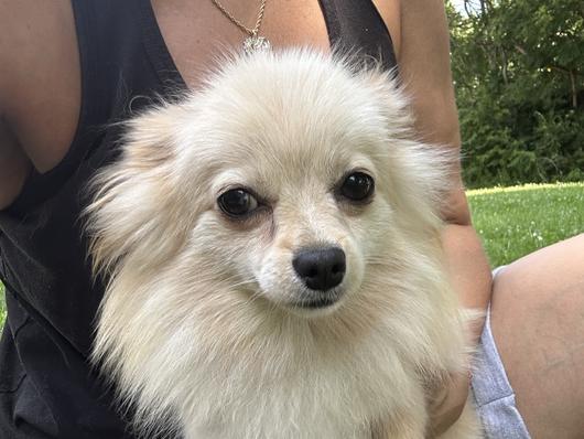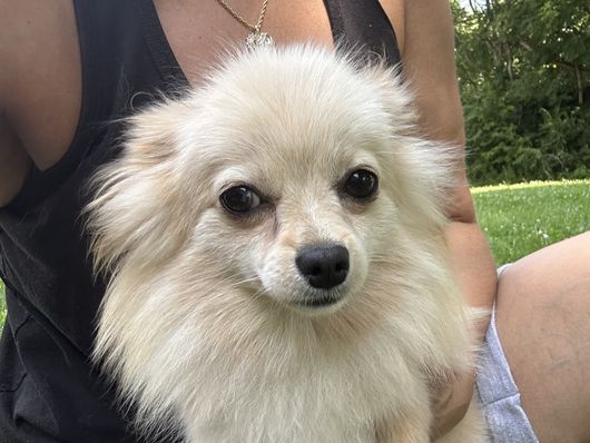June is a small 5 lb cream Pomeranian. The best mama and the sweetest girl!